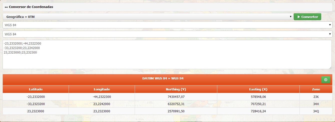 Botão para efetivar a conversão das coordenadas inseridas no campo de entrada |
