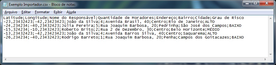 Exemplo de arquivo de dados já em formato CSV a gravado através do Microsoft Excel a partir do arquivo da ilustração acima -