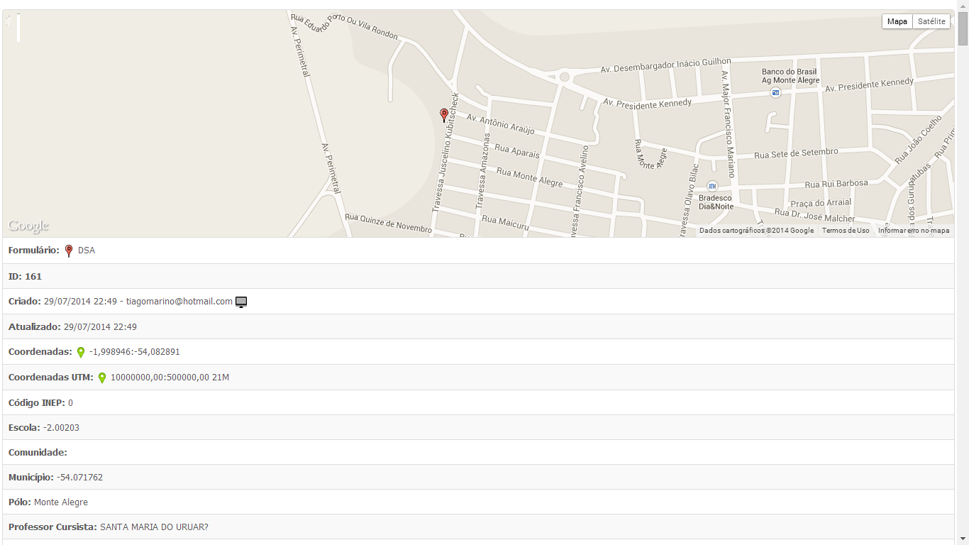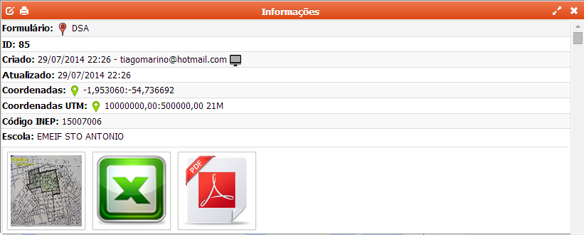 Ao clicar sobre um registro no mapa, a janela de registros será exibida contendo informações detalhadas acerca do registro selecionado, conforme ilustrado na imagem abaixo.