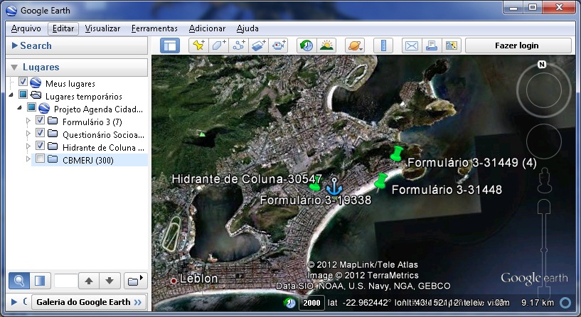 Gerar relatório dos registros visíveis no formato KML - Google Earth