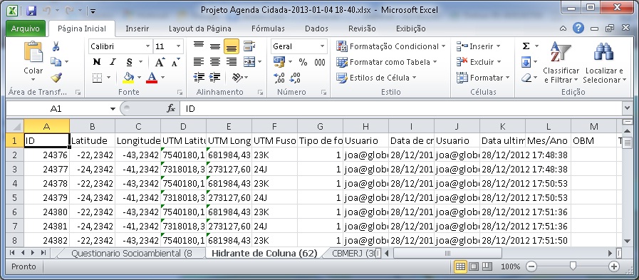 Gerar relatório dos registros visíveis no formato de Planilha XLSX - Microsoft Excel 2007 (também pode ser aberto pelo Open Office).