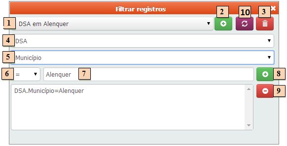 NOTA: Quando existe um filtro com mais de uma cláusula o Conector booleano (campo 6) passa a ter efeito sobre o filtro.