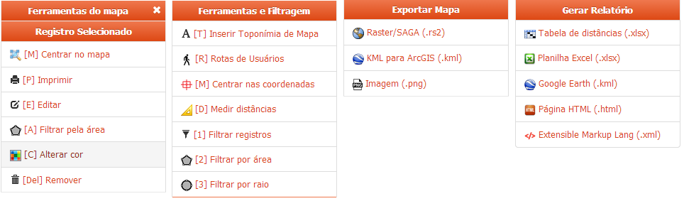 Maiores detalhes sobre opções de exportação disponíveis na seção Gerar Mapa