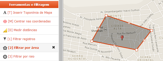 Ativar o modo de filtragem espacial por registros dentro de um polígono irregular editado pelo usuário.
