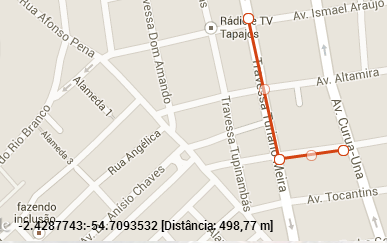 A informação da distância medida é exibida no canto inferior esquerdo do mapa.