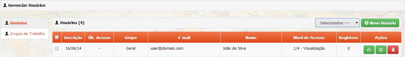 Definição do nível de permissão do usuário no projeto. Para maiores detalhes, consultar a seção Níveis e Permissões de Usuários |